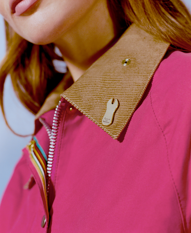 Paul Smith and Barbour share a lot of common ground, from their unwavering focus on quality and timeless design to their innate understanding of the qualities of British style. But, while Barbour is inseparable from the British countryside, Paul Smith has always been decidedly metropolitan. Now, town and country meet to create a collection packed with the distinct wit and character of both brands. Iconic Barbour jackets combine with Paul Smith’s Signature Stripe trims, unexpected colour-pops and patchwork finishes. In clothing, playful country motifs of a Friesian cow appear alongside mismatched Barbour family tartans and knitwear striped with speckled yarn for warmth with personality.