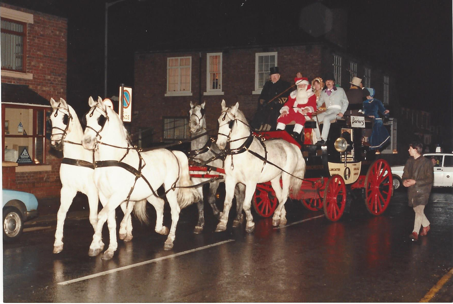 Christmas has always been an important time of year for Barkers. Father Christmas himself has enjoyed his visits to the store, often arriving by different modes of transport. Most recently he has chosen to travel by open top double decker bus, but in the past, he has opted for tractor and trailer, milk lorry, train, Victorian coach and horses, and one year he even flew by helicopter.